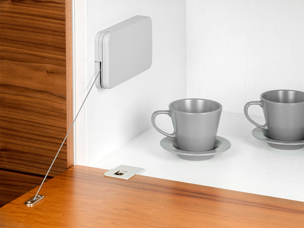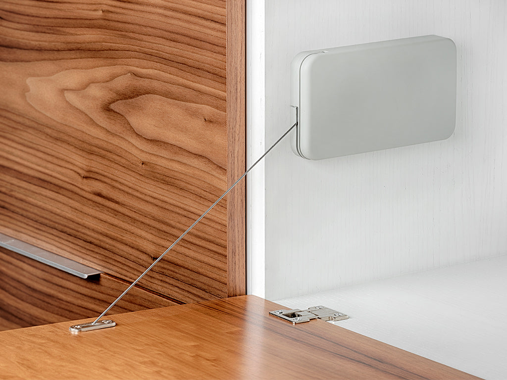 Meccanismo per ante a ribalta con cavo in acciaio. Il meccanismo fornisce una soluzione estetica funzionale e molto innovativa. Ideale per i mobili della cucina e salone.