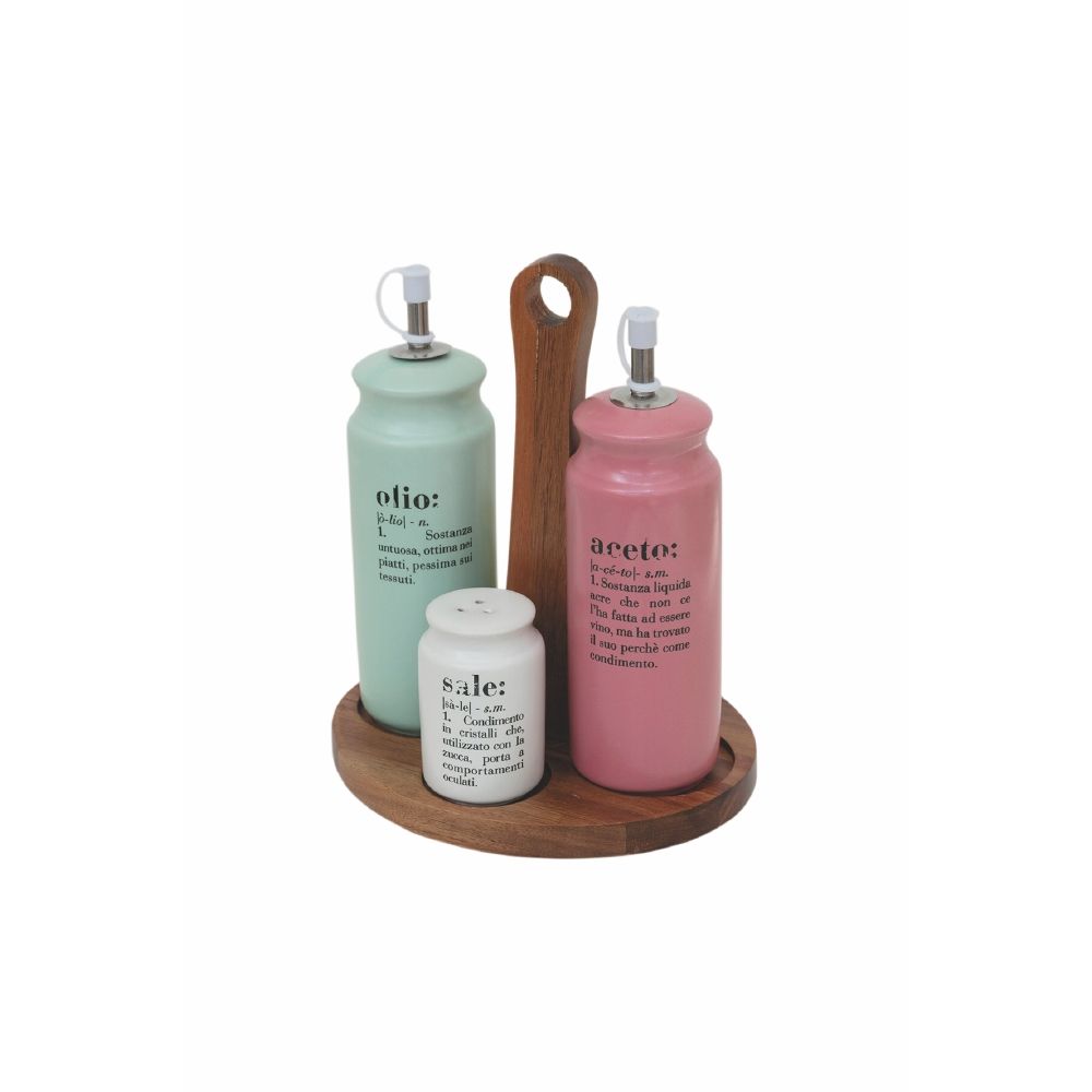 Menage Set Olio Aceto Sale e Pepe in Gres VdE Tivoli 1996 con Stand