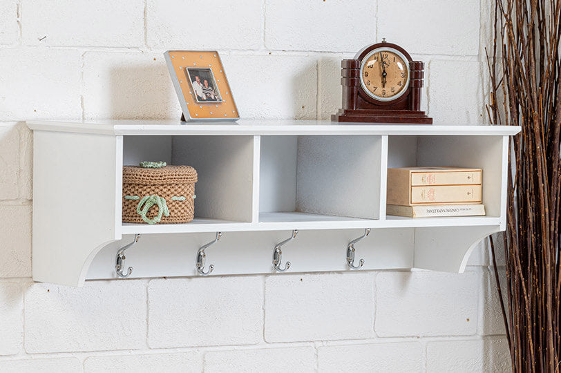 - Mensola appendiabiti con tre scomparti e 4 ganci doppi