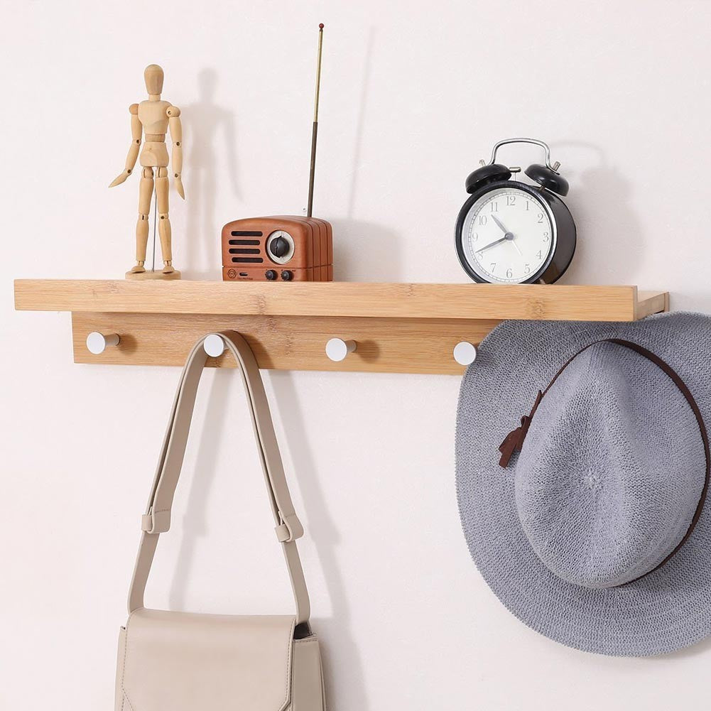 Dai un tocco unico alla tua casa! Con questo bellissimo attaccapanni da parete con mensola realizzato in legno di Bambù in colore naturale.