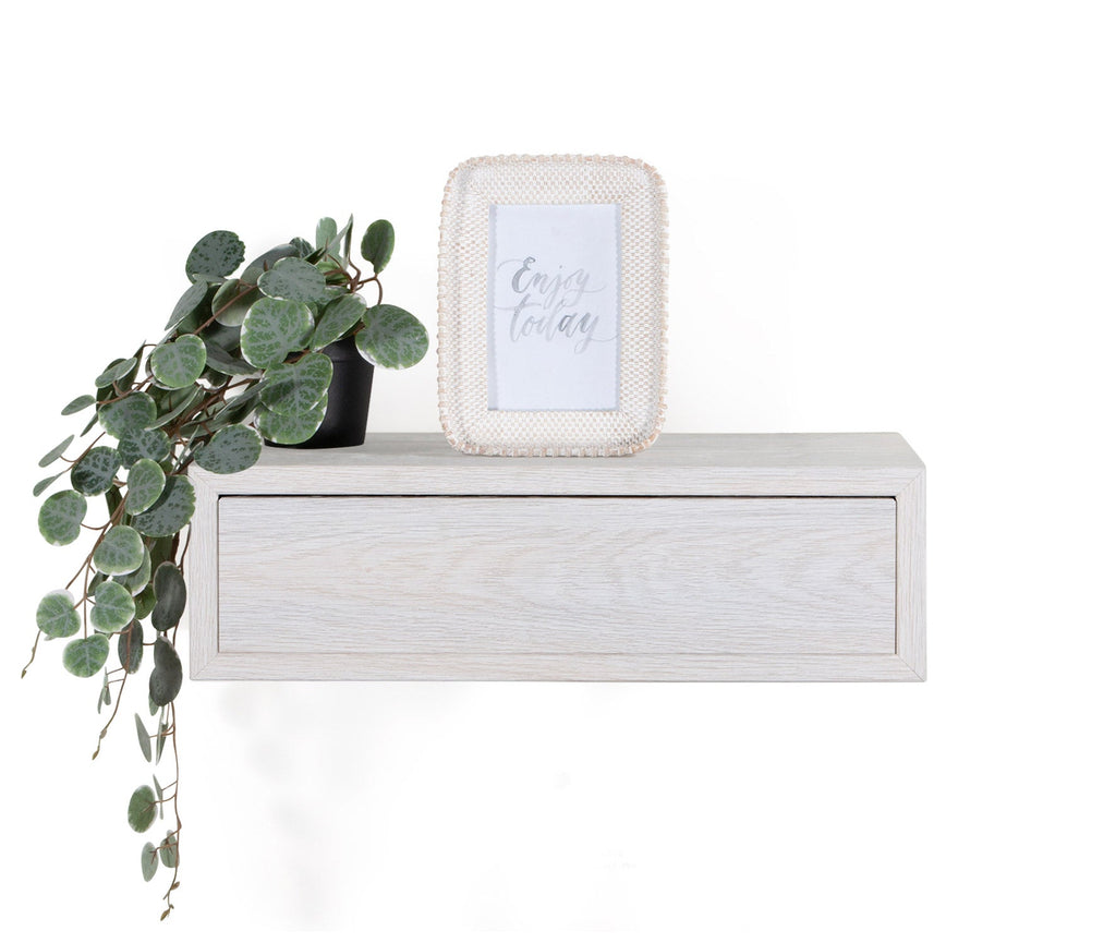 Mensola da Parete 1 Cassetto 45x13,4x20 cm in Fibra di Legno Lego Rovere Sbiancato