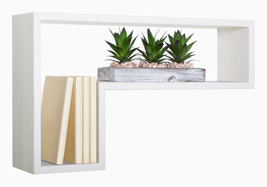 Mensola da Parete a Forma di L 61x37x15,5 cm in Fibra di Legno Lettera Rovere Sbiancato