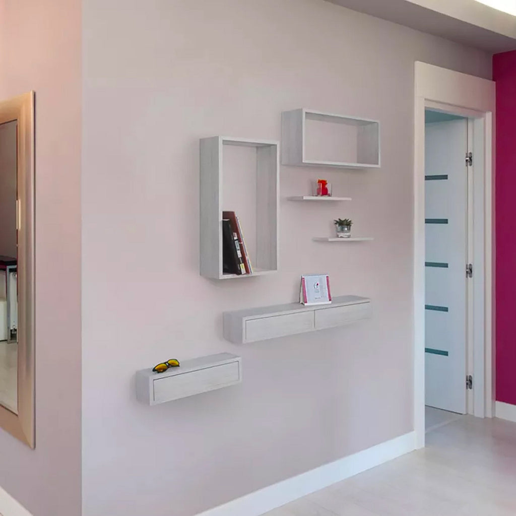 Nei cassetti scorrevoli potrai ad esempio riporre le chiavi di casa o dell’auto quando rientri da lavoro, ammennicoli o qualsiasi altro oggetto o accessorio che non trova una collocazione ben precisa in casa. L’apertura dei cassetti avviene tramite il comodo sistema a pressione mentre potrai abbellire il piano d’appoggio come meglio desideri con decorazioni di vario genere, come piante d’appartamento, libri d’autore, foto ricordo, lampade, souvenir di viaggi e valorizzare così al meglio la parete.
