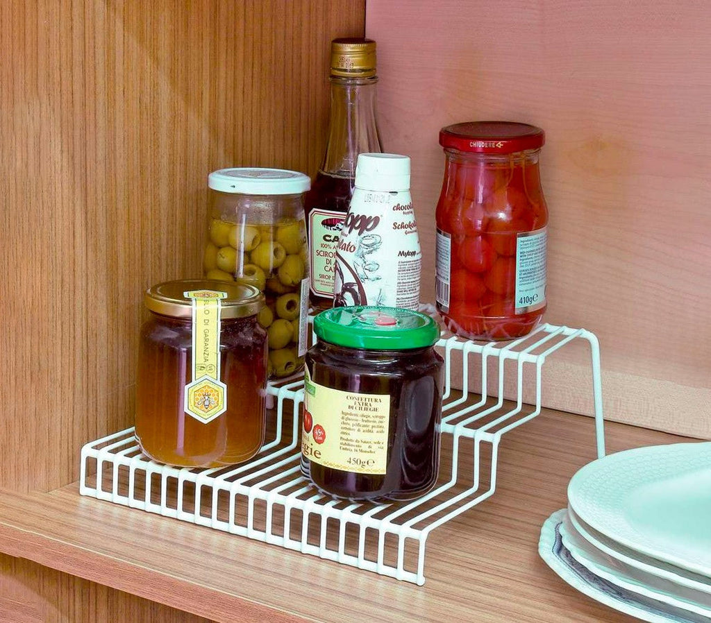 Questa pratica mensola in metallo è adatta per ogni tipologia di stile, dal classico al moderno. Laccata in vernice bianca antiruggine è perfetta da utilizzare come pratico portaspezie nella vostra cucina. La mensola ha 3 livelli differente altezza e dei gommini antiscivolo in gomma.