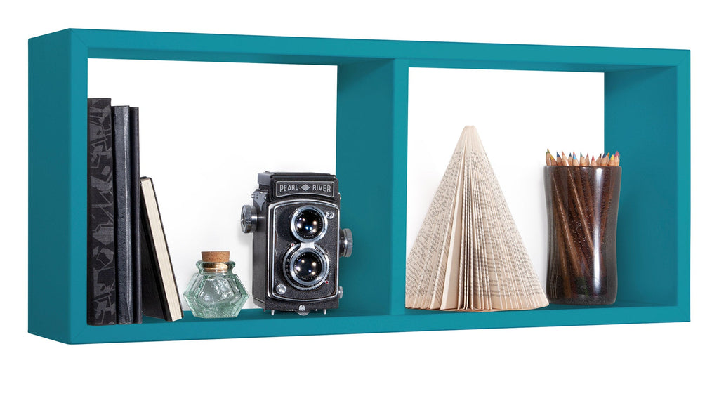 Mensola Rettangolare 2 Scomparti da Parete 70x30x15,5 cm in Fibra di Legno Morgana Blu Atollo