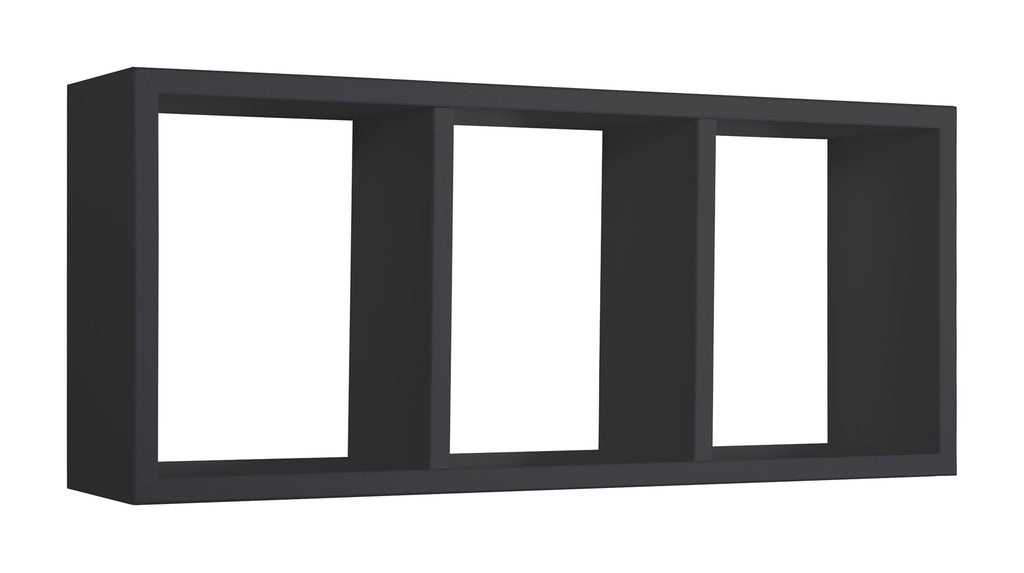 Mensola Rettangolare 3 Scomparti da Parete 70x30x15.5 cm in Fibra di Legno Tristano Nero