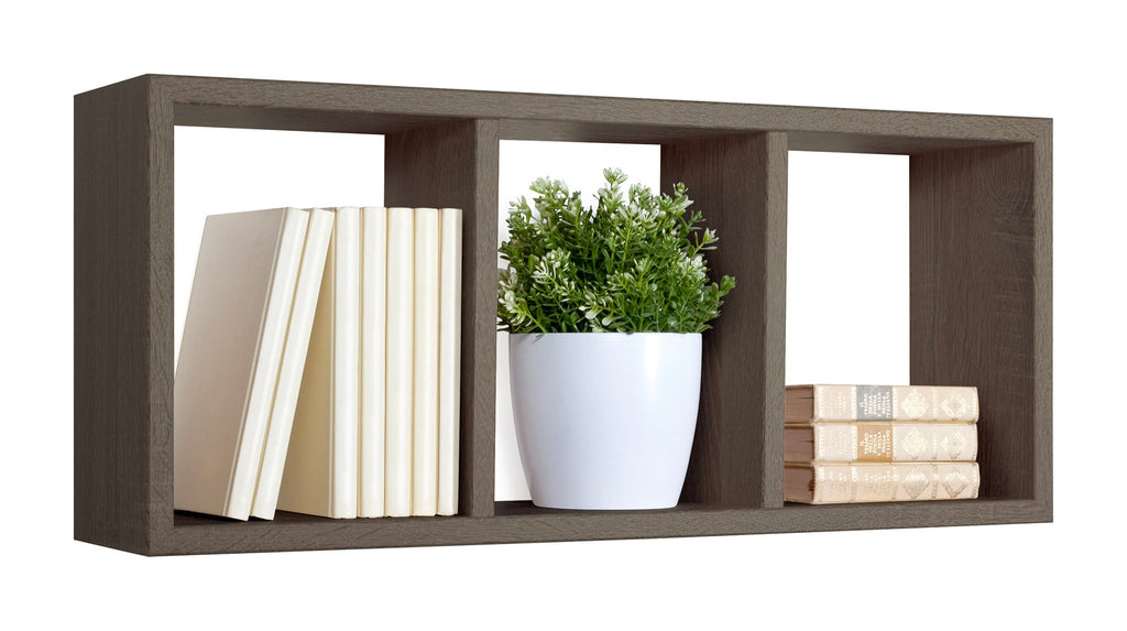 Mensola Rettangolare 3 Scomparti da Parete 70x30x15.5 cm in Fibra di Legno Tristano Noce Segato