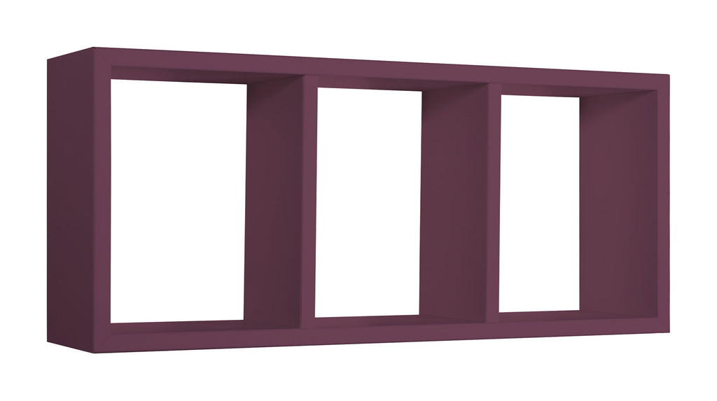 Mensola Rettangolare 3 Scomparti da Parete 70x30x15.5 cm in Fibra di Legno Tristano Viola Melanzana