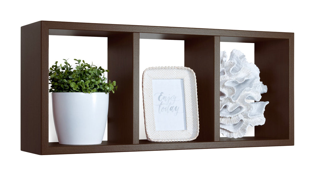 Mensola Rettangolare 3 Scomparti da Parete 70x30x15.5 cm in Fibra di Legno Tristano Wengè
