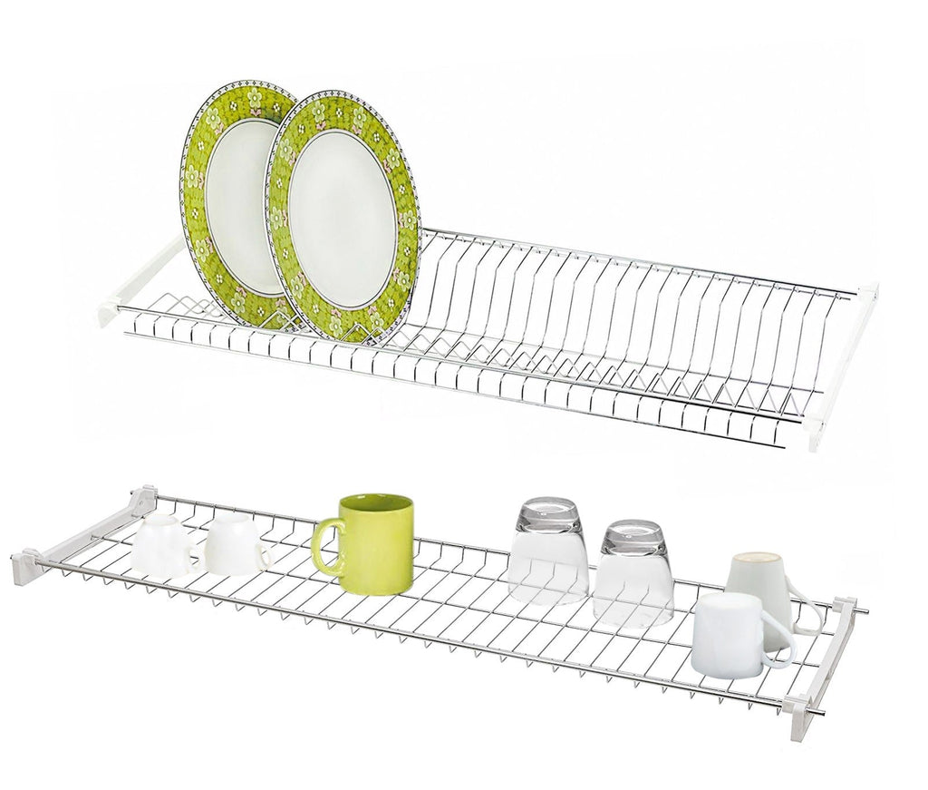 La comodità in casa non è mai abbastanza. Questo scolapiatti è un accessorio indispensabile per la cucina. Dal design classico moderno, da posizionare all'interno del mobile. Struttura in Acciaio Cromato con doppia griglia: Porta piatti e portabicchieri, non si arrugginisce ed è durevole nel tempo. All'interno della confezione 4 supporti in plastica: due per lo scolapiatti e due per il porta bicchieri.