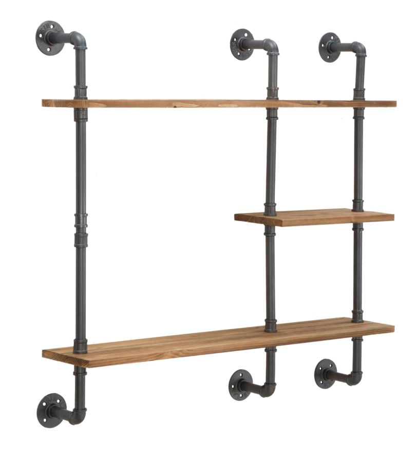 Mensole da Muro Manhattan 100x23x98 cm Legno di Abete e in Ferro Grigio e Marrone
