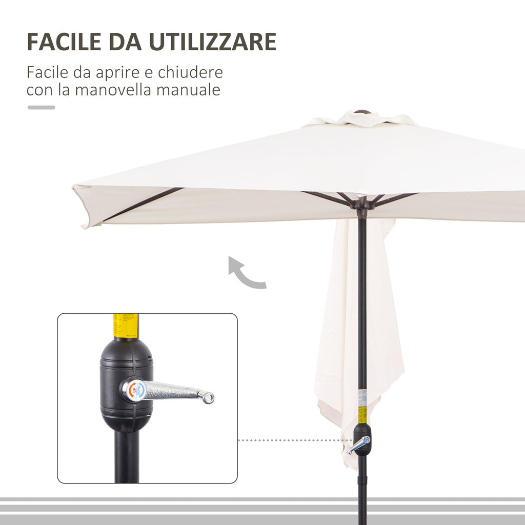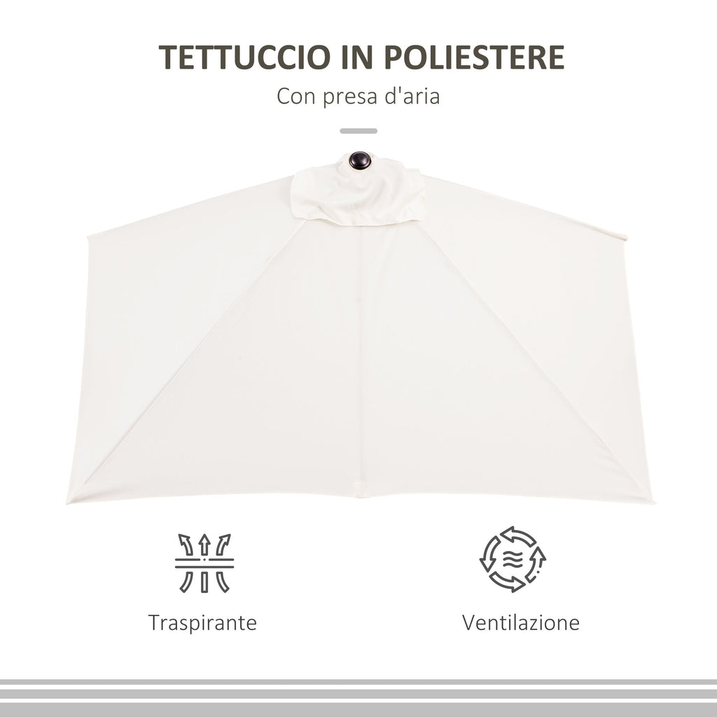 Mezzo Ombrellone da Giardino Mezzaluna 230 x130x245 cm con Apertura a Manovella Crema