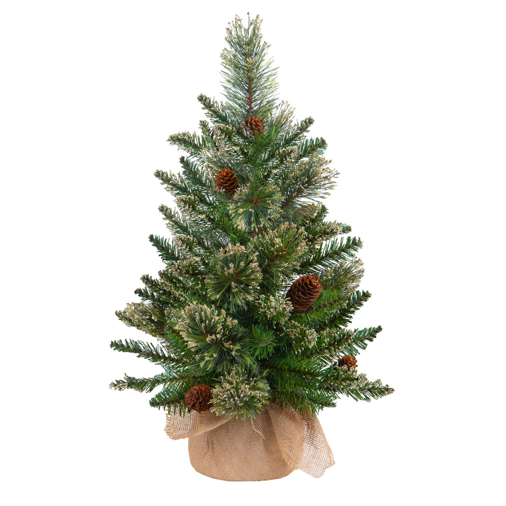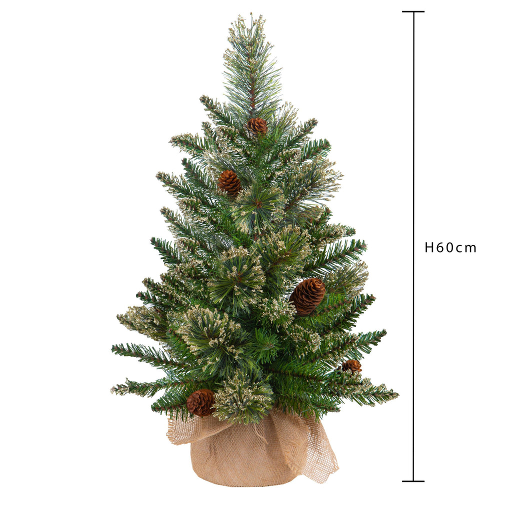 Mini Albero di Natale Artificiale Abete H60 cm con Sacco e Glitter e 60 Tips Verde
