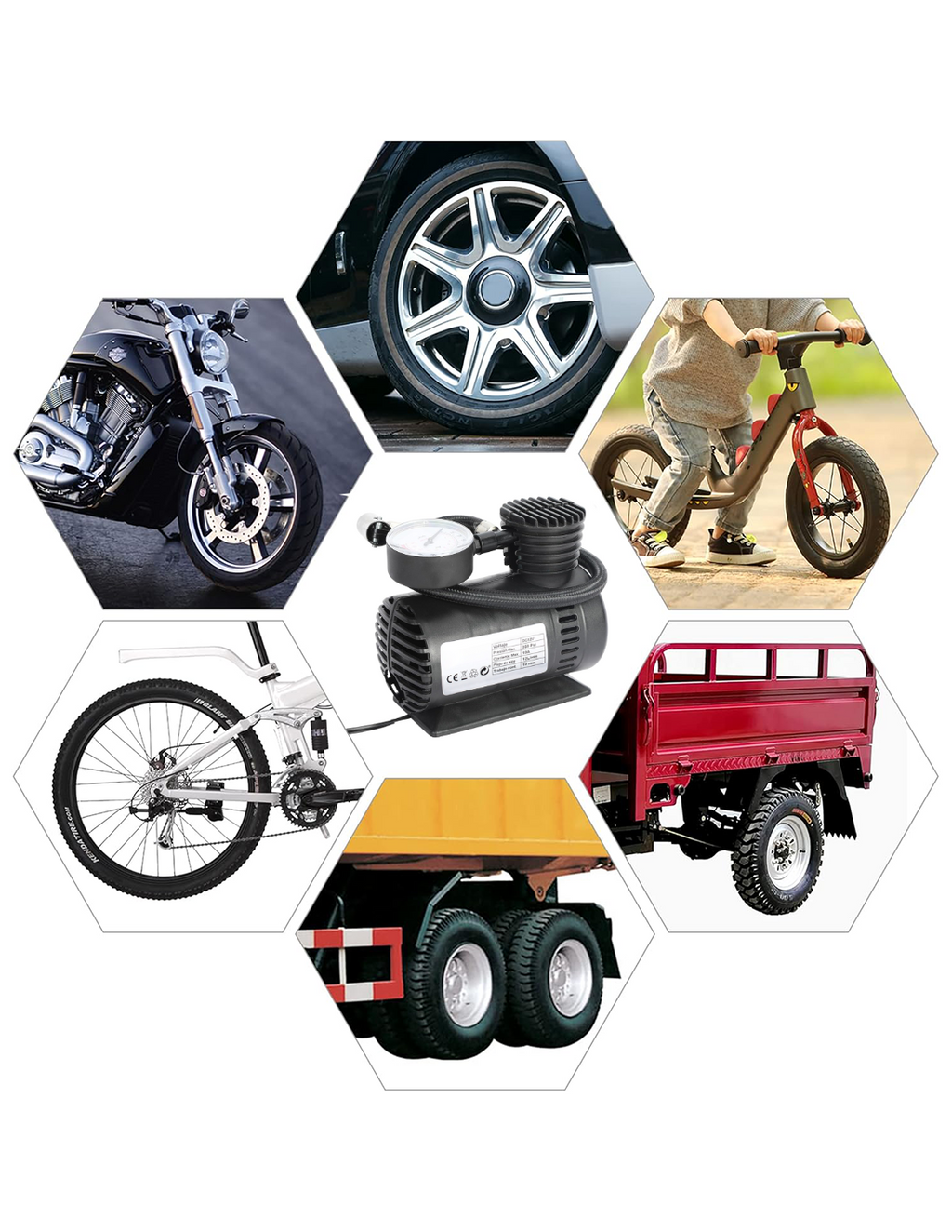 Prodotto di grande utilità che si rende indispensabile in auto per ogni eventuale inconveniente con le gomme della Ns auto. Questo compressore portatile permette di gonfiare un pneumatico di una utilitaria in neanche 2 minuti con la sola alimentazione della presa accendisigari dell'auto a 12 Volt. Con il manometro incorporato avrete la possibilità di controllare la pressione ed eventualmente gonfiarli per raggiungere la pressione ottimale oppure misurarne solo la pressione senza alimentarlo elettricamente. Con la dotazione di 3 tipologie d'aghi/ugelli si potranno gonfiare anche altri oggetti come palloni da gioco, materassini, canotti, piscine gonfiabili, ruote moto e/o bicicletta. D'utilità anche in camper e/o barca per i giochi d'acqua.