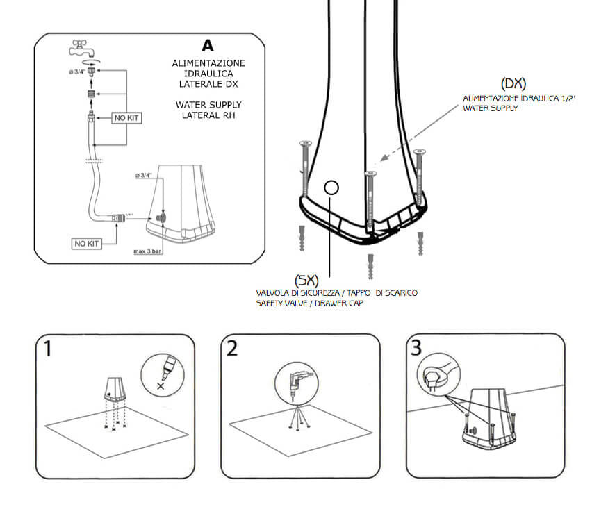 La Mini Doccia Solare Happy Go è progettata per essere utilizzata in condizioni di alimentazione idrica normale con una pressione inferiore a 3 bars (3 kg).