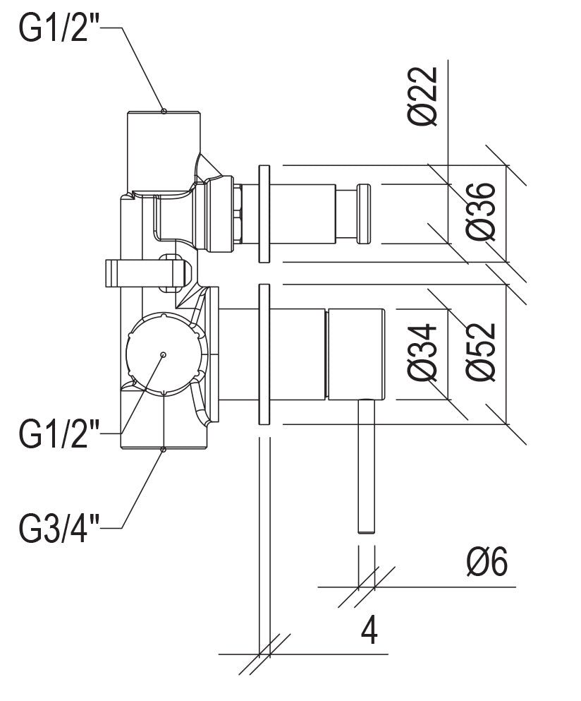 Miscelatore monocomando per doccia a 2 vie diametro 34mm con deviatore a pulsante con ritorno automatico e connessione G1/2". Nati per essere contemporanei, le superfici lisce e pulite fanno dei rubinetti Tevere un accessorio di design per spazi moderni