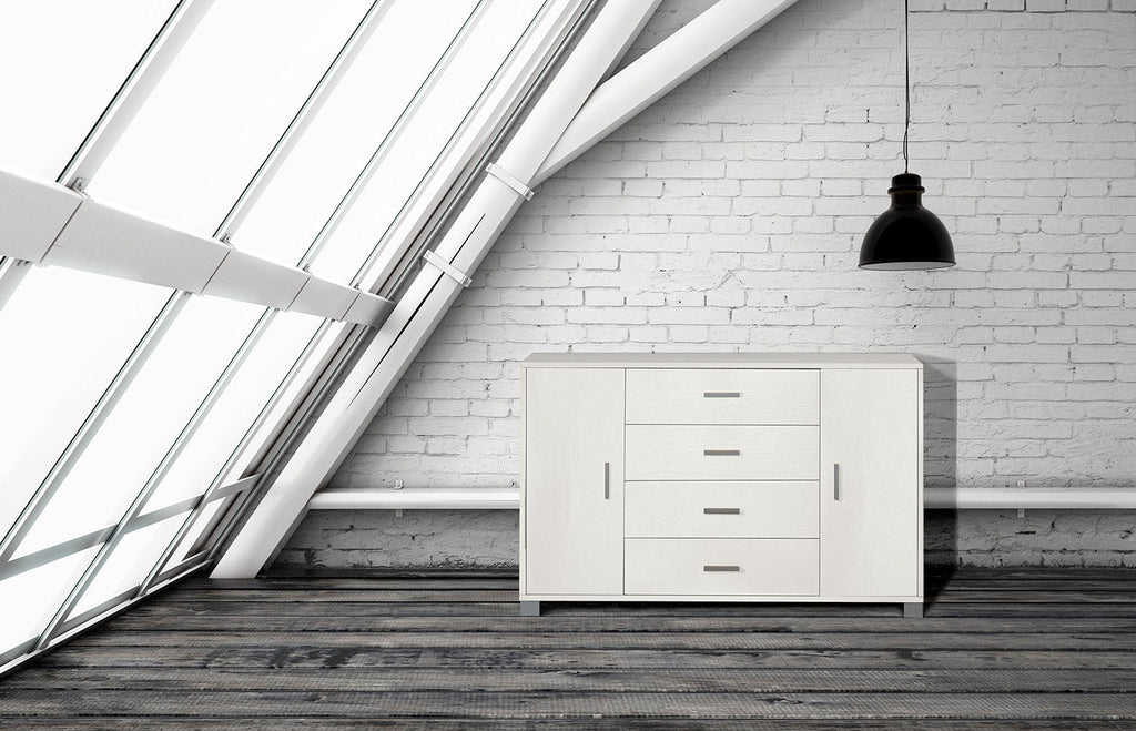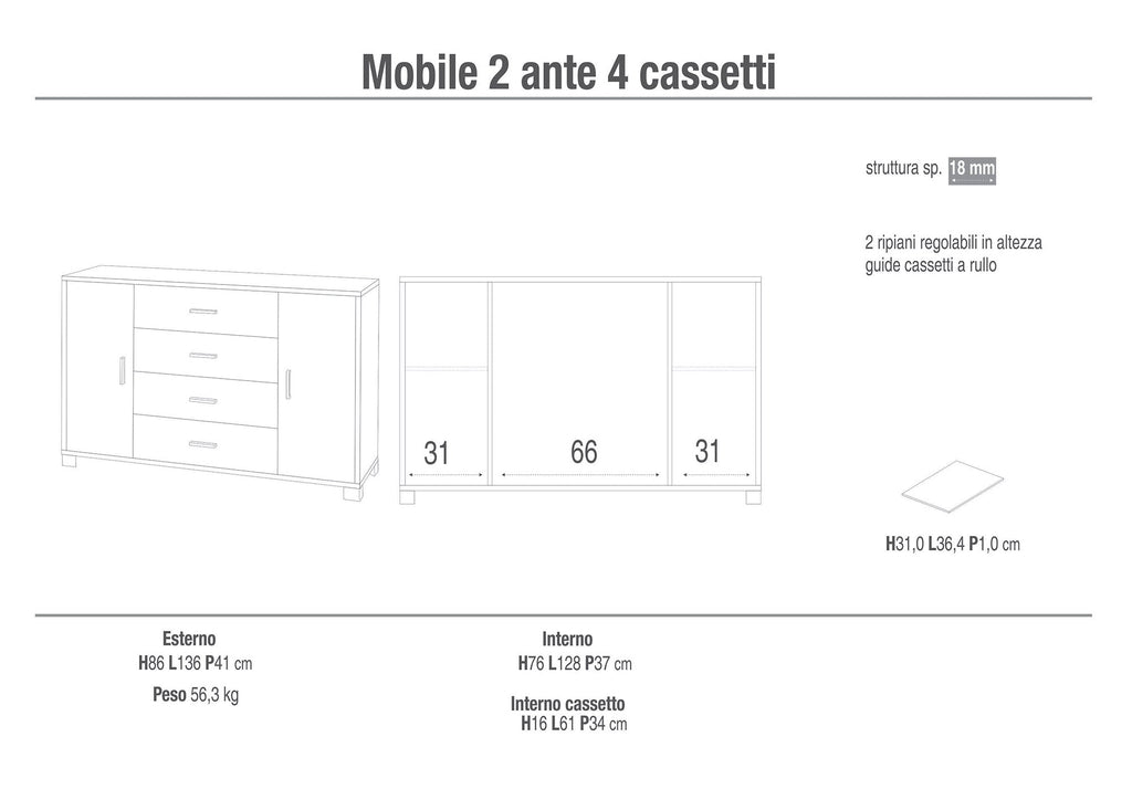 Mobile 2 Ante 4 Cassetti 136x86x41 cm Bianco Fiammato