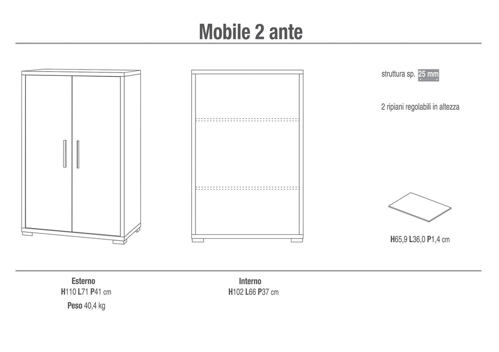 Mobile 2 Ante 71x110x41 cm Ossido Bianco