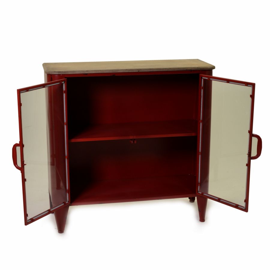 Mobile 2 Ante in Metallo Top in Legno Edimburgo Rosso