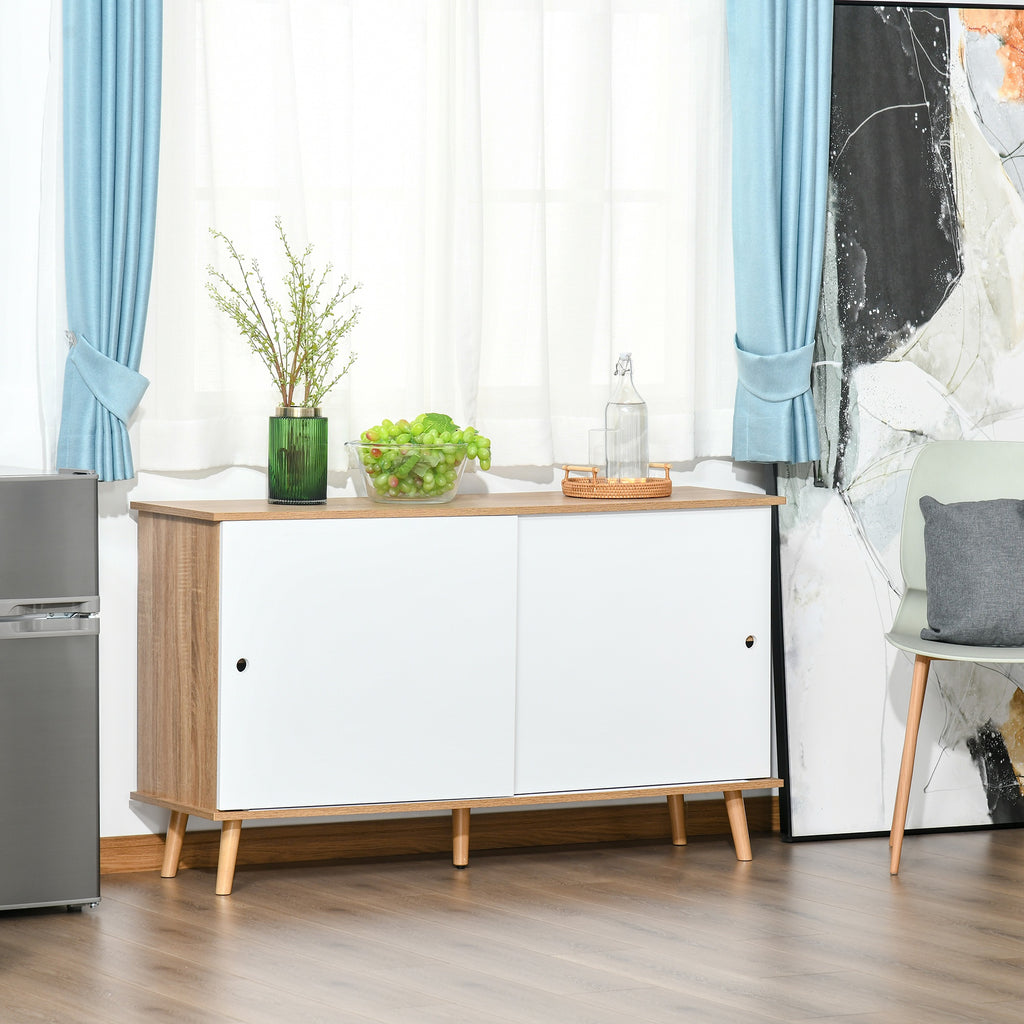 Mobile 2 Ante Scorrevoli 130x40x74,5 cm in Legno Rovere e Bianco