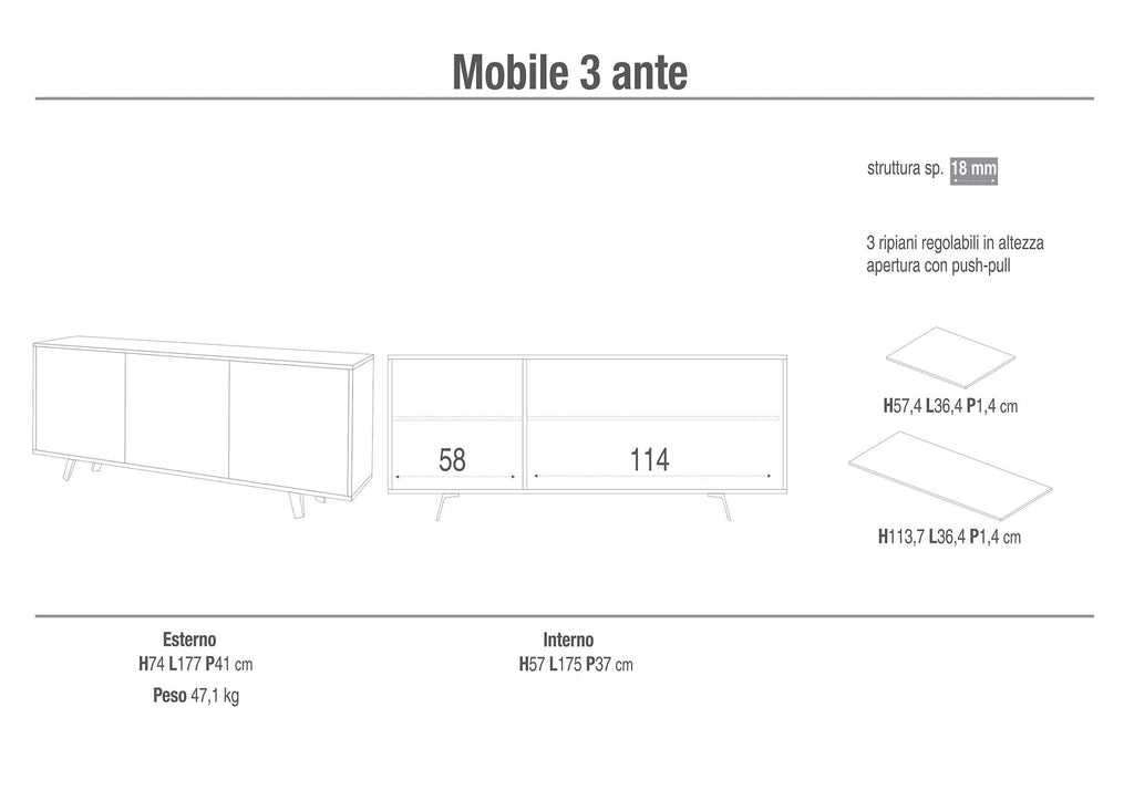 - Dimensioni (LxAxP): 177x74x41 cm