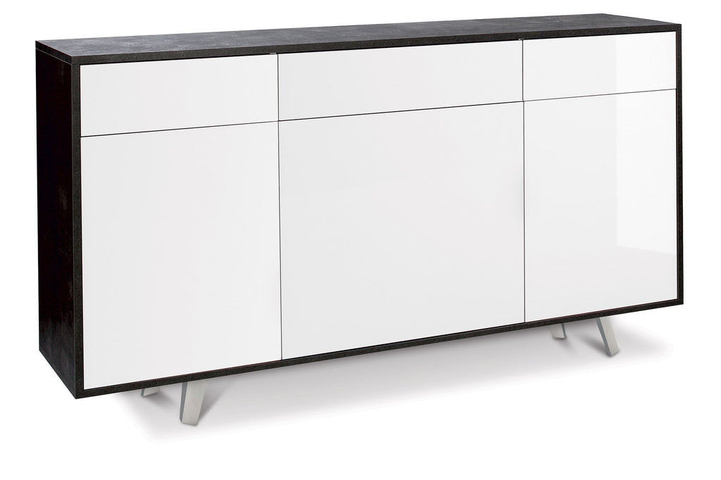 Mobile 3 Ante 3 Cassetti 164x92x41 cm Ossido Nero/Bianco Lucido