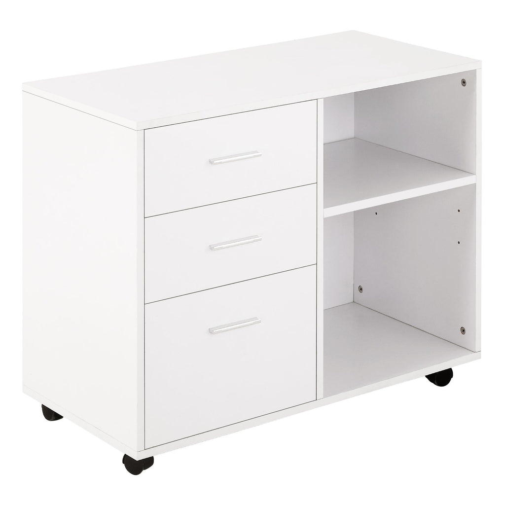 Mobile 3 Cassetti 2 Ripiani 80x40x65 cm con Ruote in Truciolare Bianco