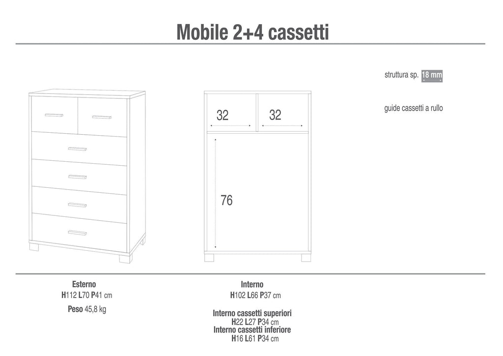 Mobile 4+2 Cassetti 70x112x41 cm Bianco Fiammato