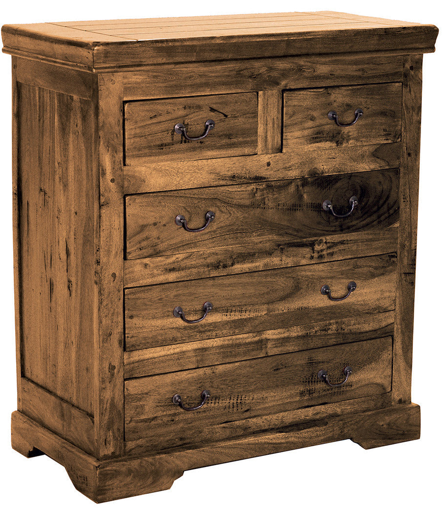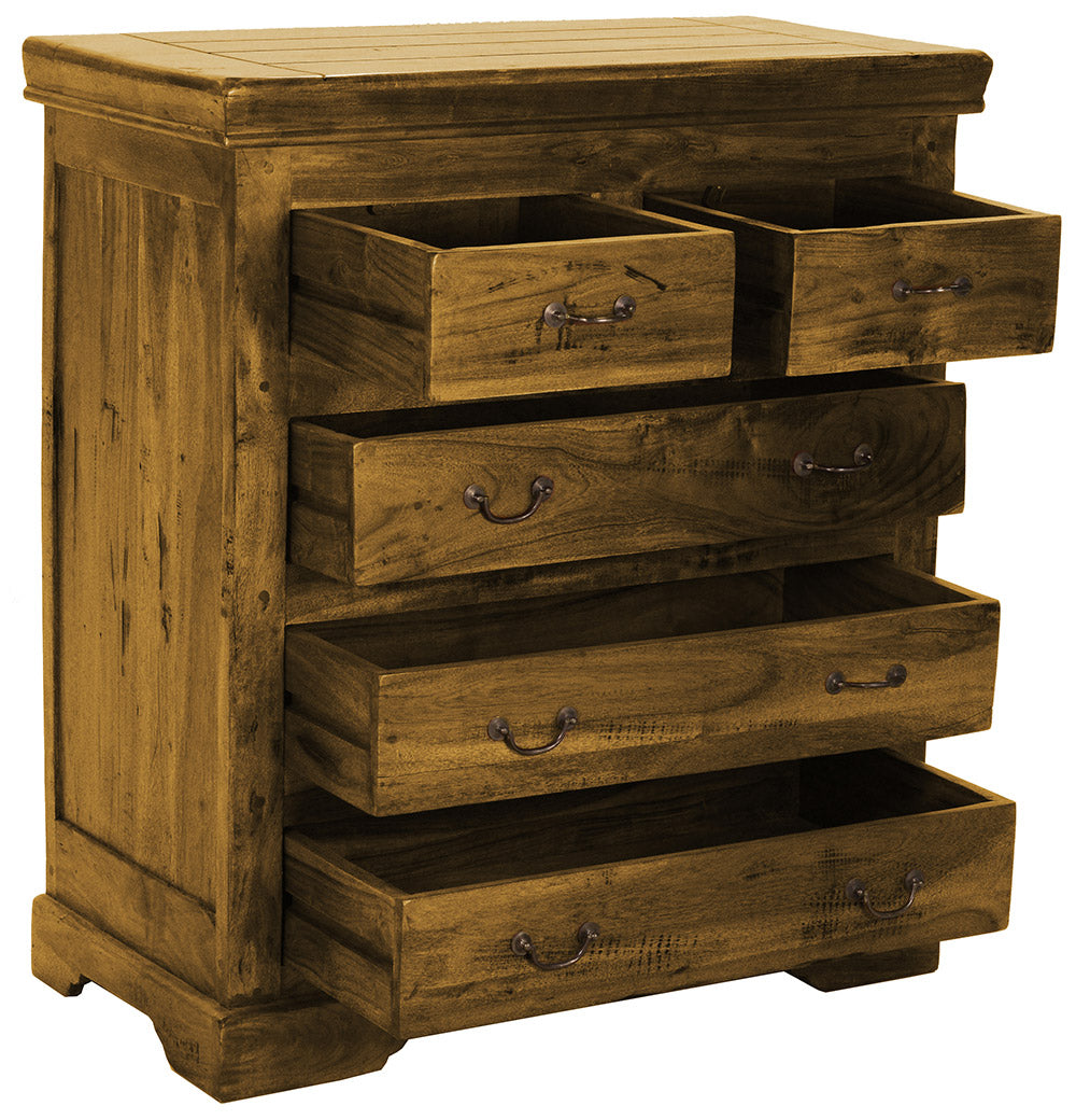 Mobile in Legno Acacia Antic Chiaro con 5 Cassetti cm 90x45H100