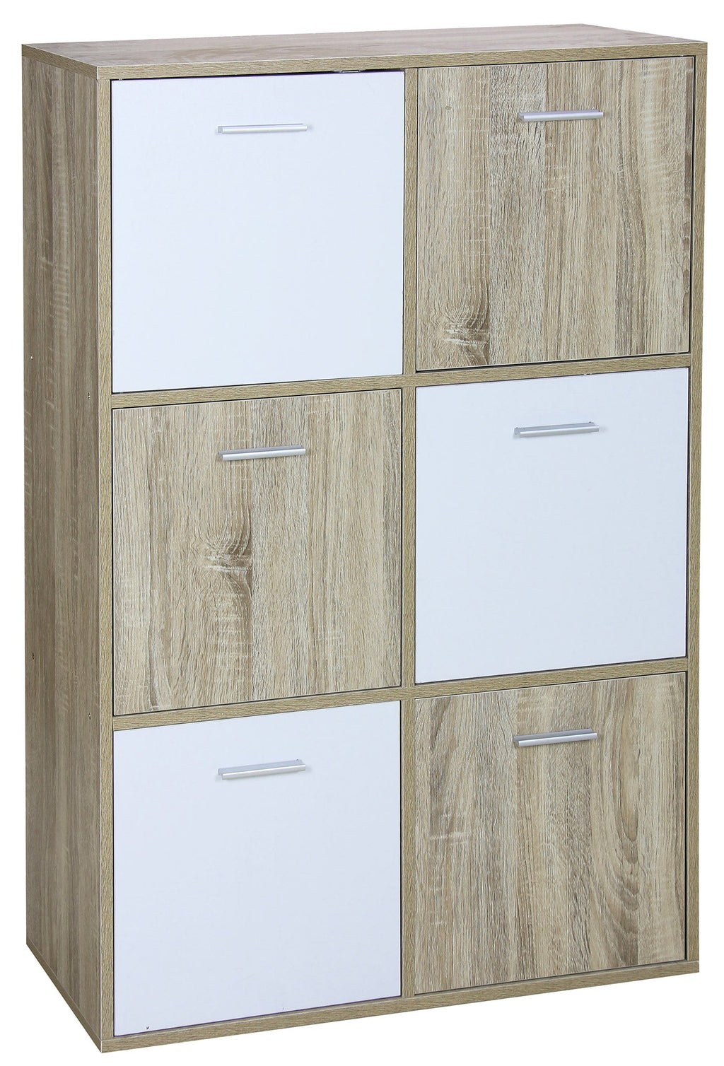 Mobile 6 Ante 77x30x115 cm in Legno Truciolare Bianco e Sonoma
