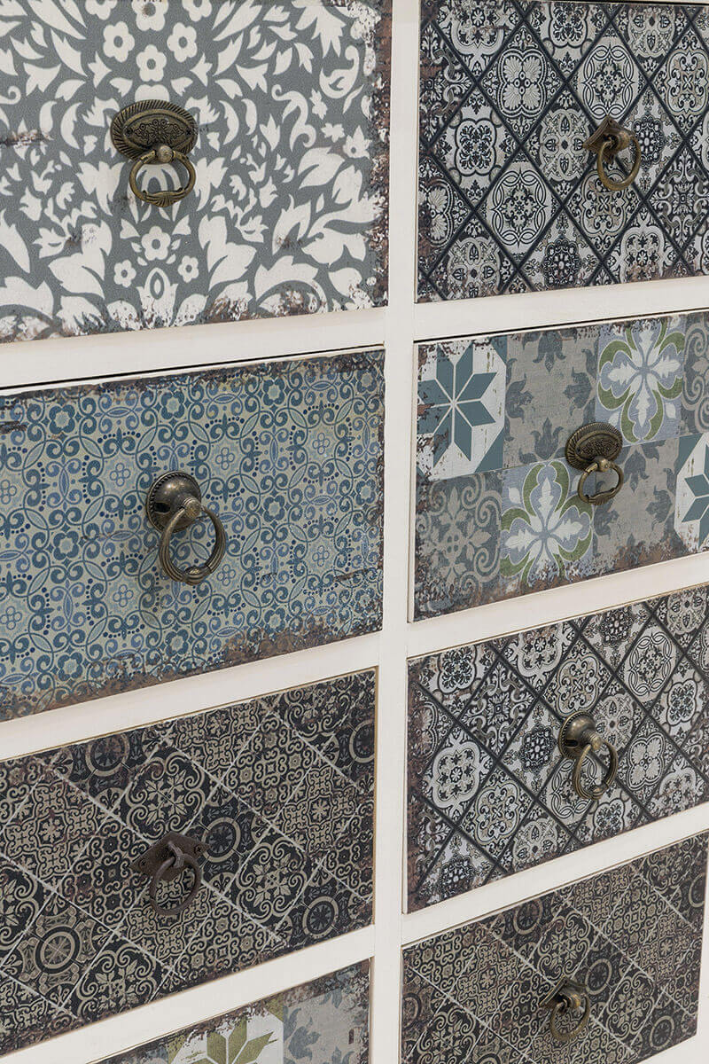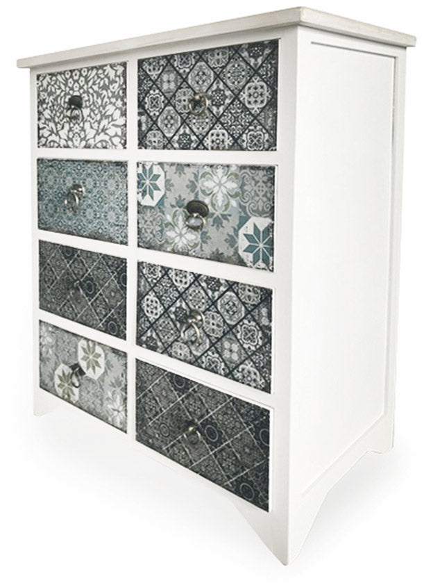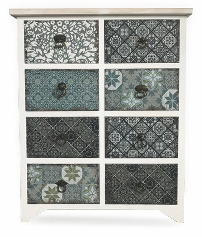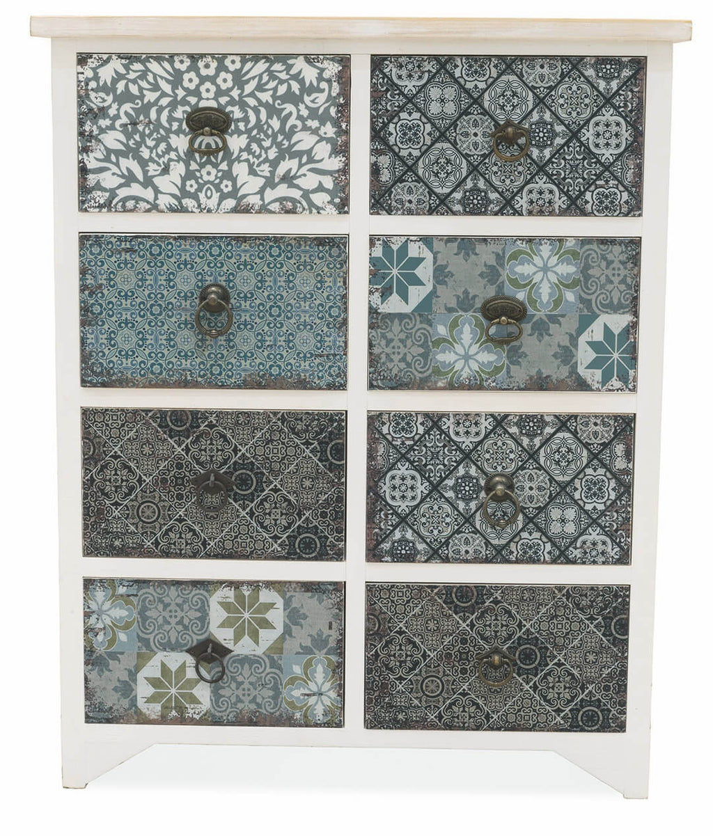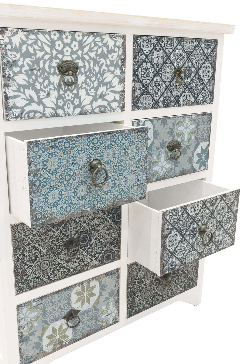 Mobile 8 Cassetti 65x37x81 cm in Legno Soriani Bianco Anticato