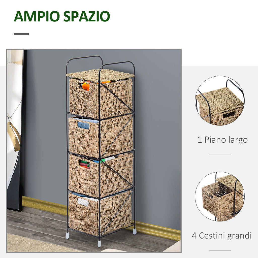 Mobile a Colonna da Bagno 4 Cesti in Alga Marina e Ferro naturale 20x20x78 cm