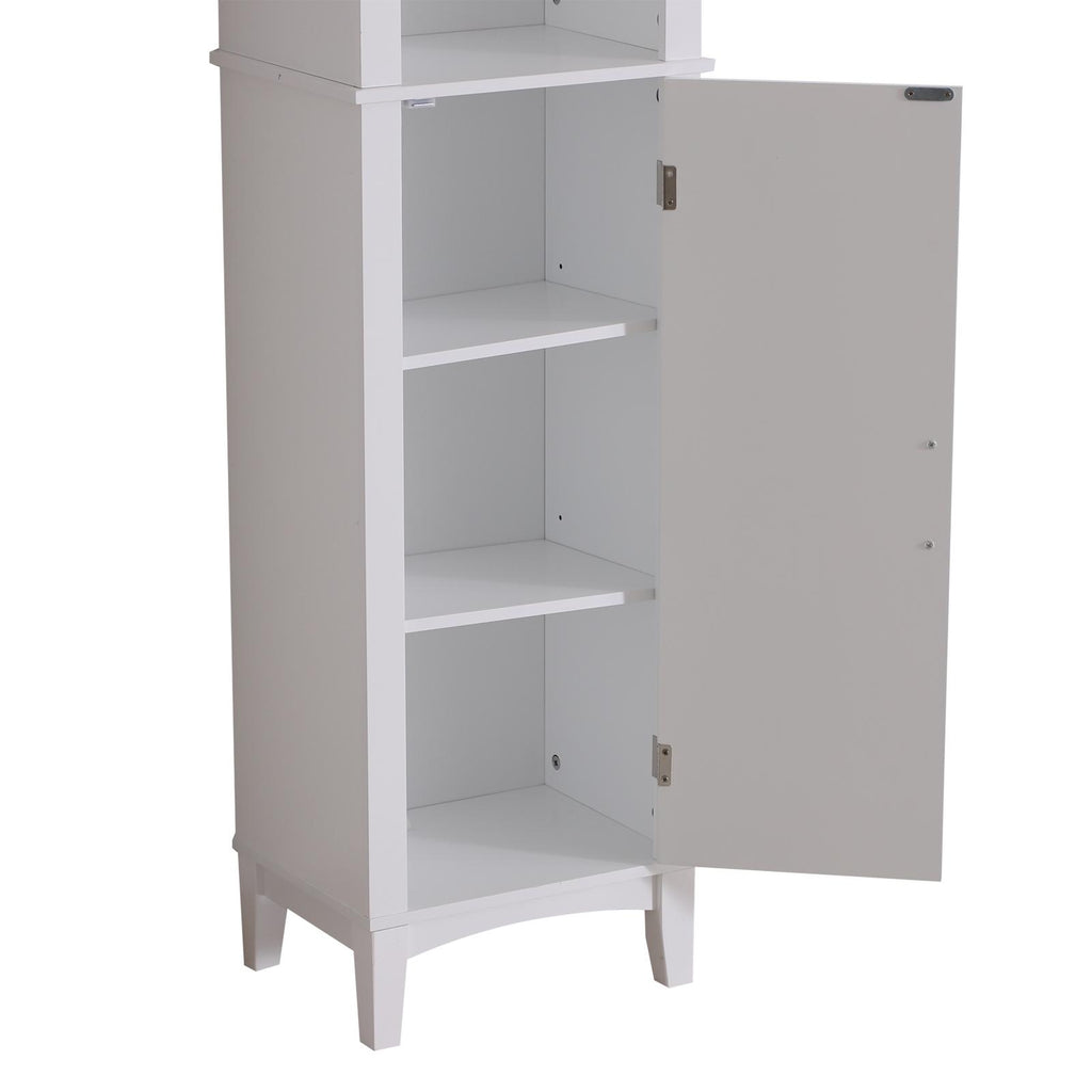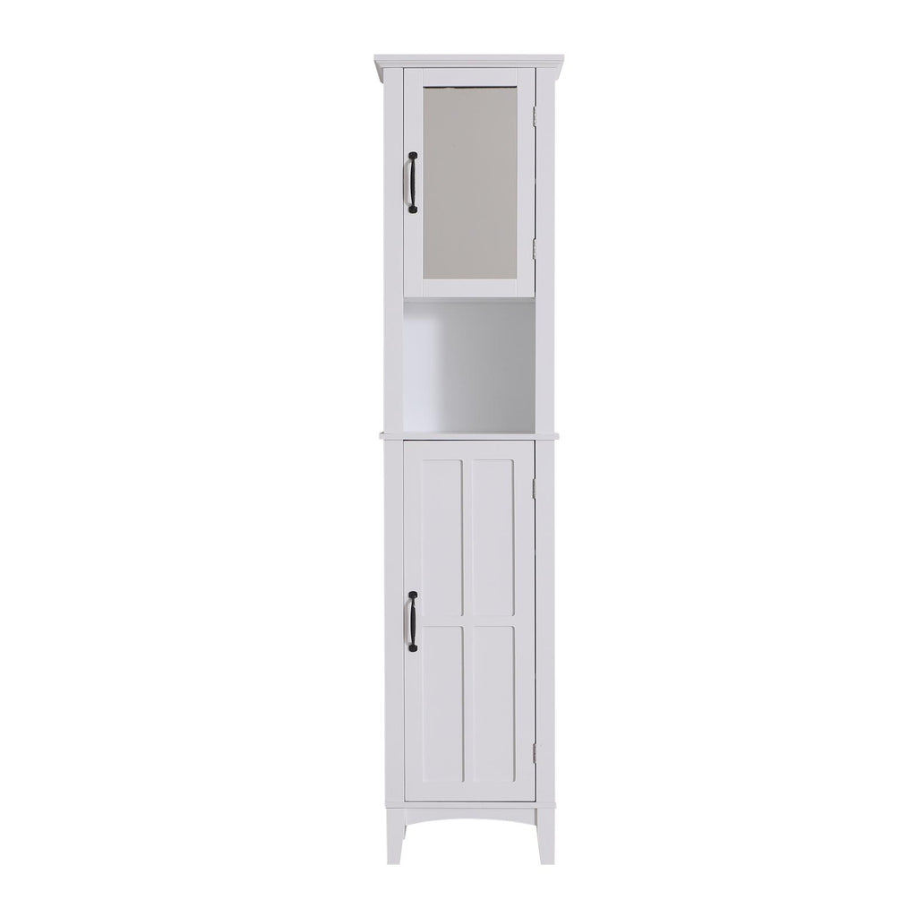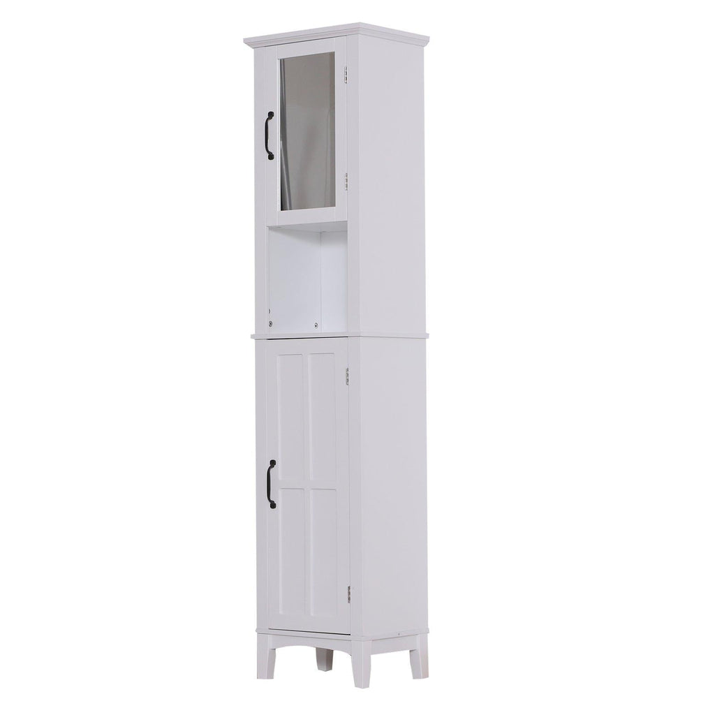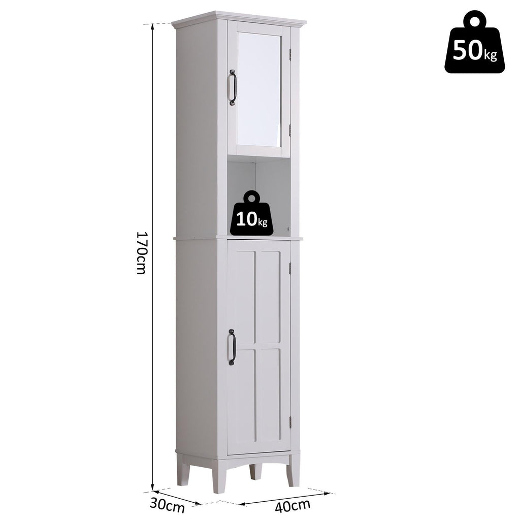 Mobile a Colonna da Bagno Salvaspazio con Specchio in Legno Bianco 40x30x170 cm
