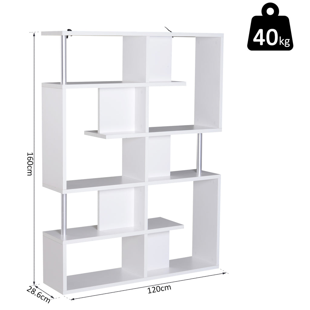 Mobile a Scaffali Libreria 5 Livelli in Legno Bianco 120x28.6x160 cm