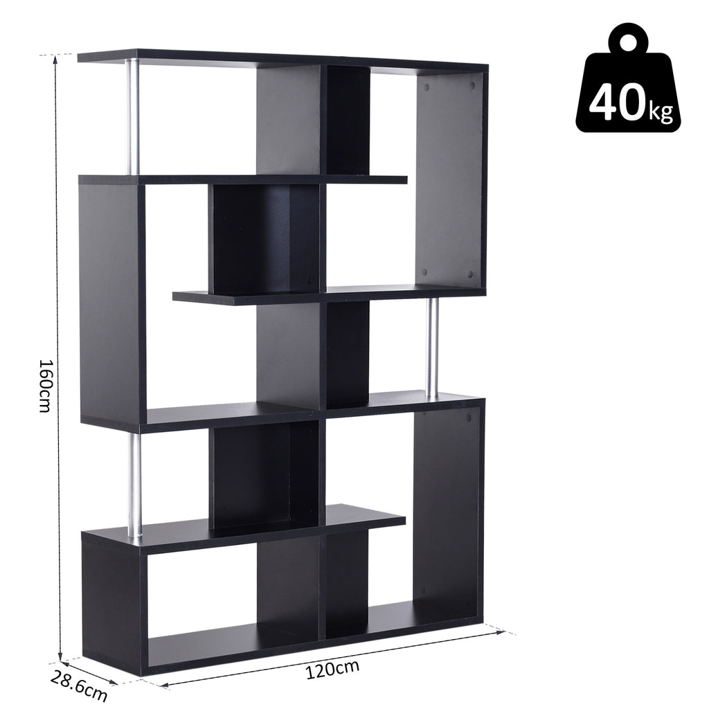 Mobile a Scaffali Libreria 5 Livelli in Legno Nero 120x28.6x160 cm