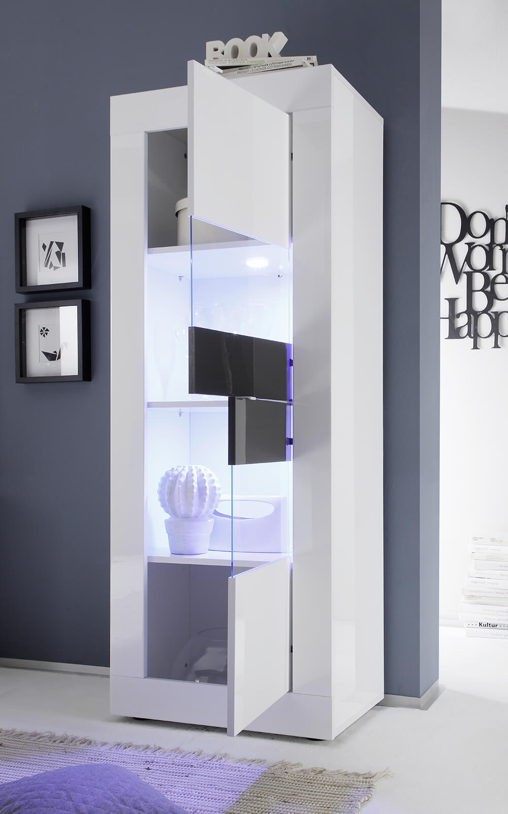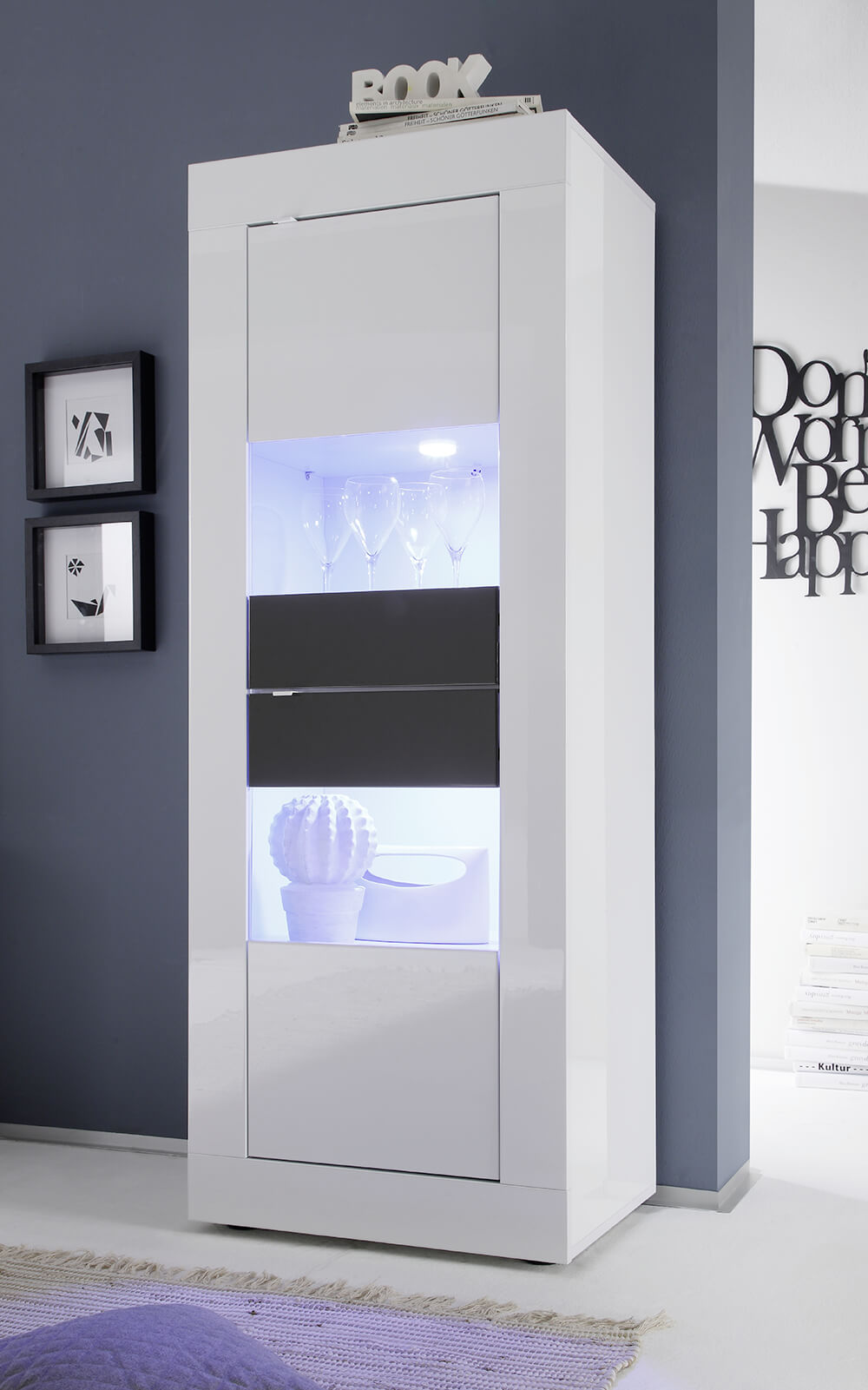 Mobile Alto da Salotto 2 Porte 61x43x162cm TFT Basic Bianco Lucido e Antracite Lucido e