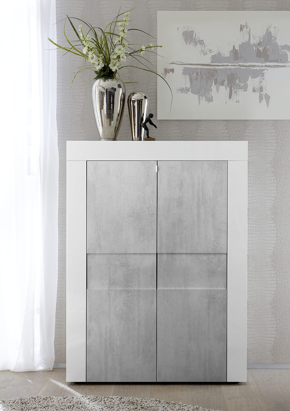 Mobile Alto da Salotto 2 Porte 92x42x125cm TFT Build Bianco Lucido e Cemento