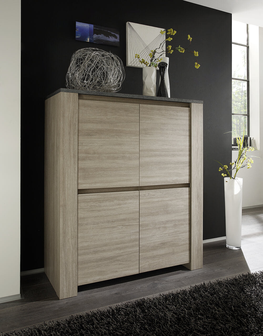 Mobile Alto da Salotto Top in Pietra 4 Porte 4 Ripiani 142x119x51cm TFT Elba Quercia e Pietra Scura