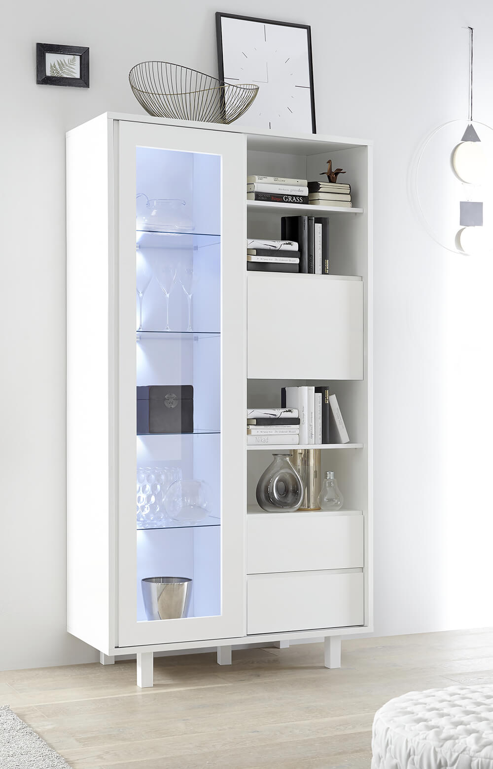 Mobile Alto Soggiorno 2 Cassetti 1 Porta in Melamina 106x50x203cm TFT Aladdin Bianco