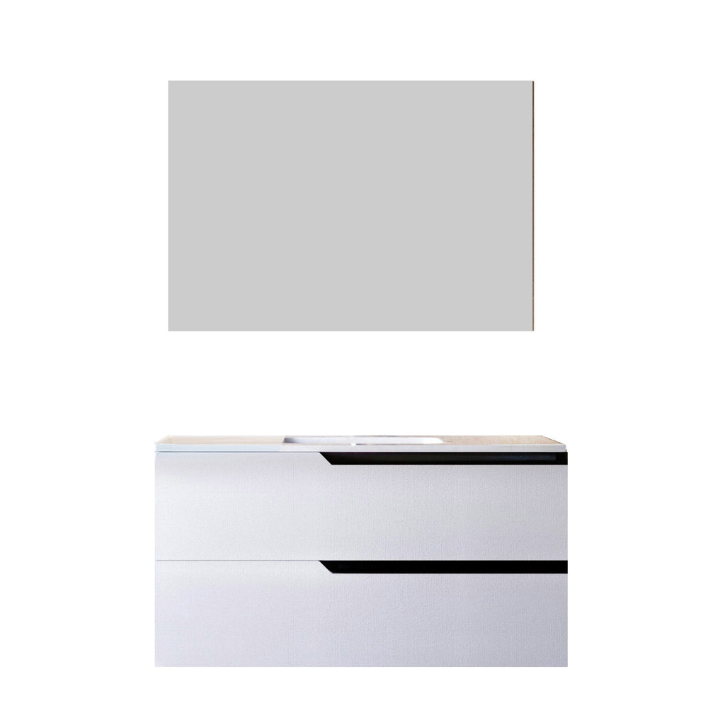 Mobile bagno 100 cm Sospeso Bianco Porcellana Boston con Specchio Rettangolare Bonussi