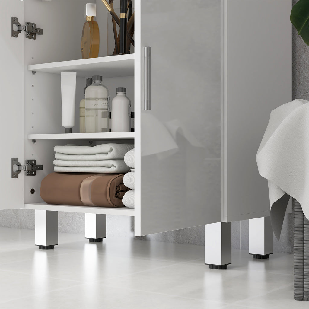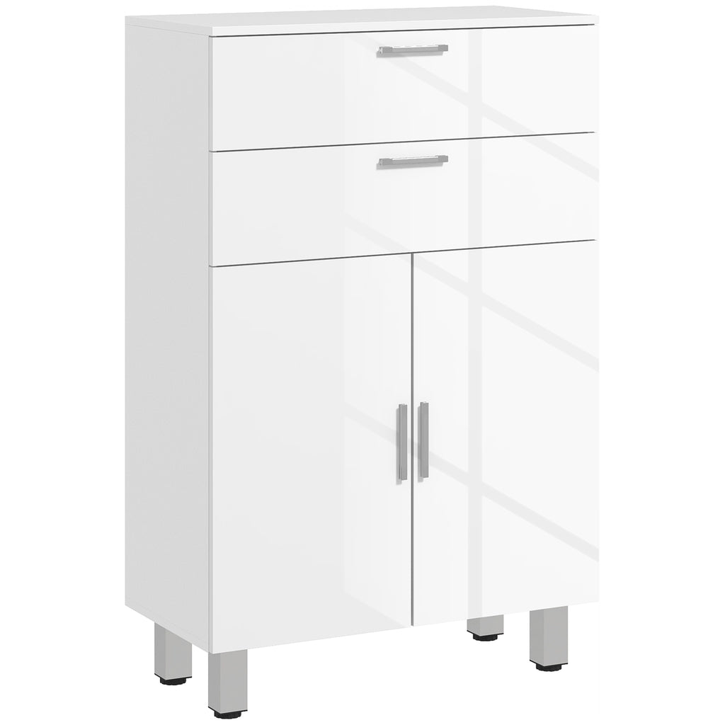 Se necessiti di spazio in più per il tuo bagno, questo mobile da bagno è la soluzione ideale! La struttura è dotata di 2 cassetti e un armadietto con mensola regolabile, ideale per riporre asciugamani, prodotti igienici quotidiani e tanto altro. Il design contemporaneo e la finitura bianca brillante assicurano invece un'inserimento armonioso in qualsiasi bagno.