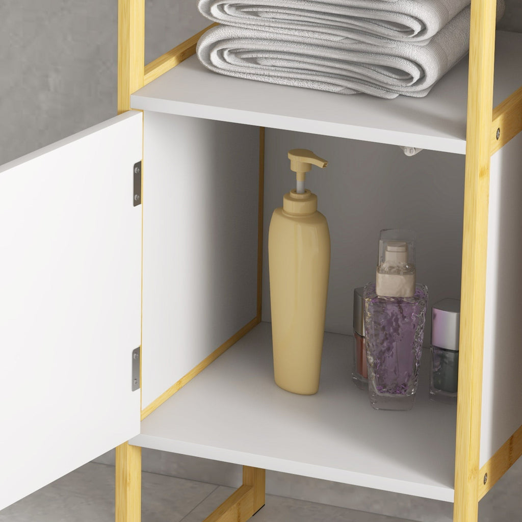 Mobile Bagno con Ripiano Aperto e Anta con Apertura a Pressione 33x33x80 cm in Bambù e MDF Bianco