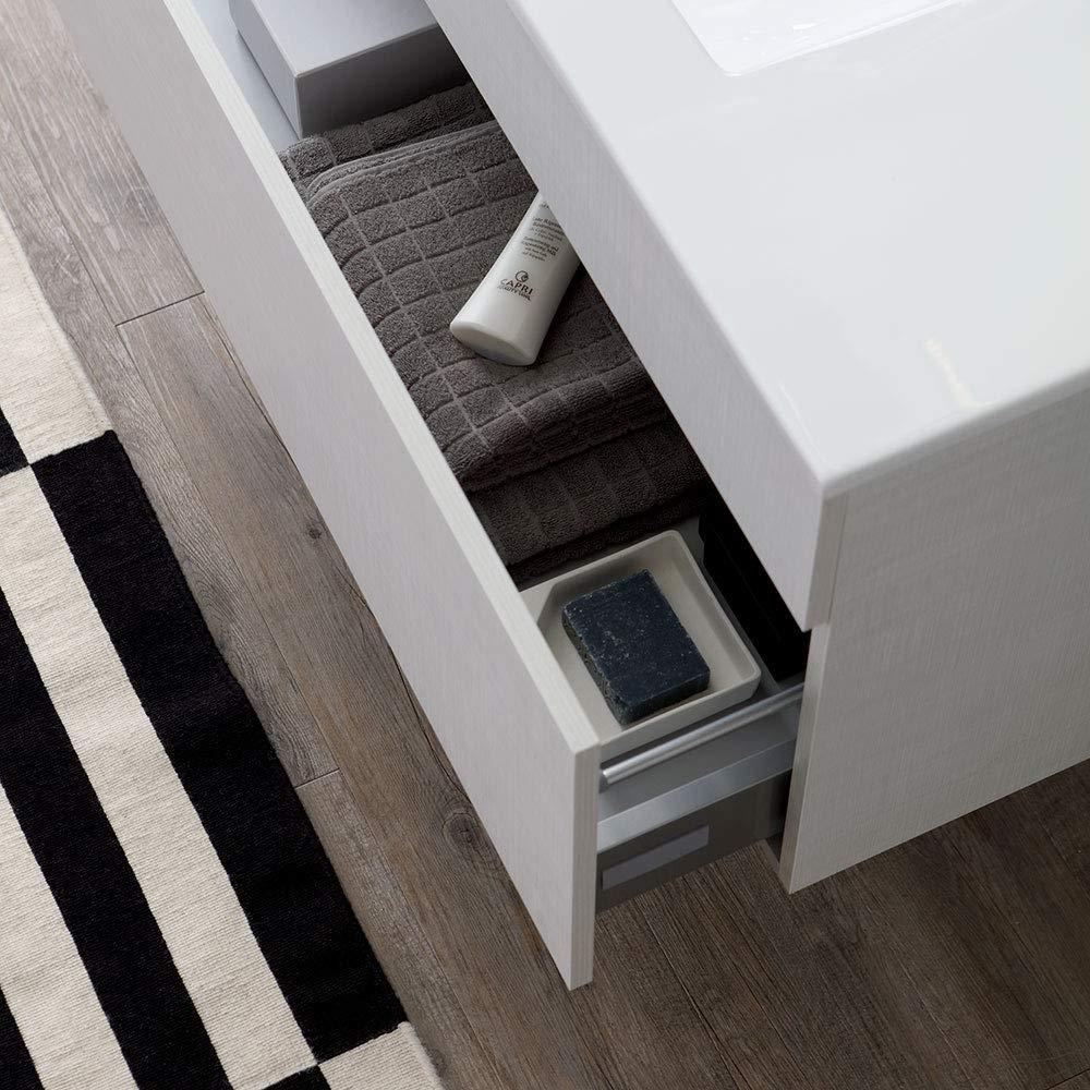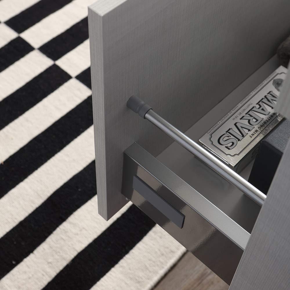 La struttura del mobile è in MDF, un legno resistente ma leggero, gli interni sono rivestiti in laminato e la chiusura è ammortizzata.