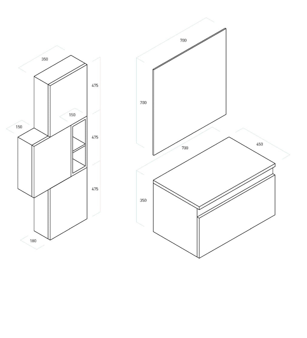 Mobile Bagno Sospeso 6 Elementi in Melaminico 131x46,5x190cm TFT Ibiza Bianco Giallo