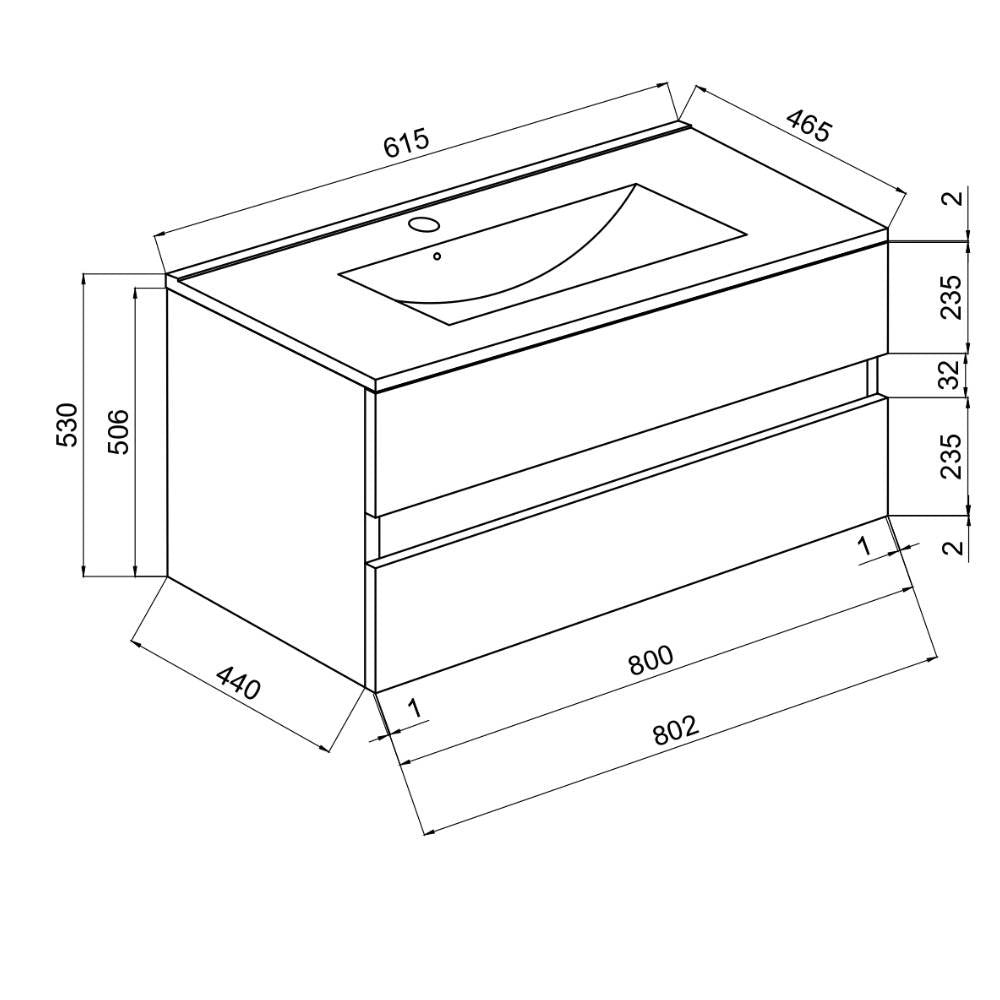 Mobile bagno sospeso rovere fumo 81,5x46,5x53 H Bracciano.