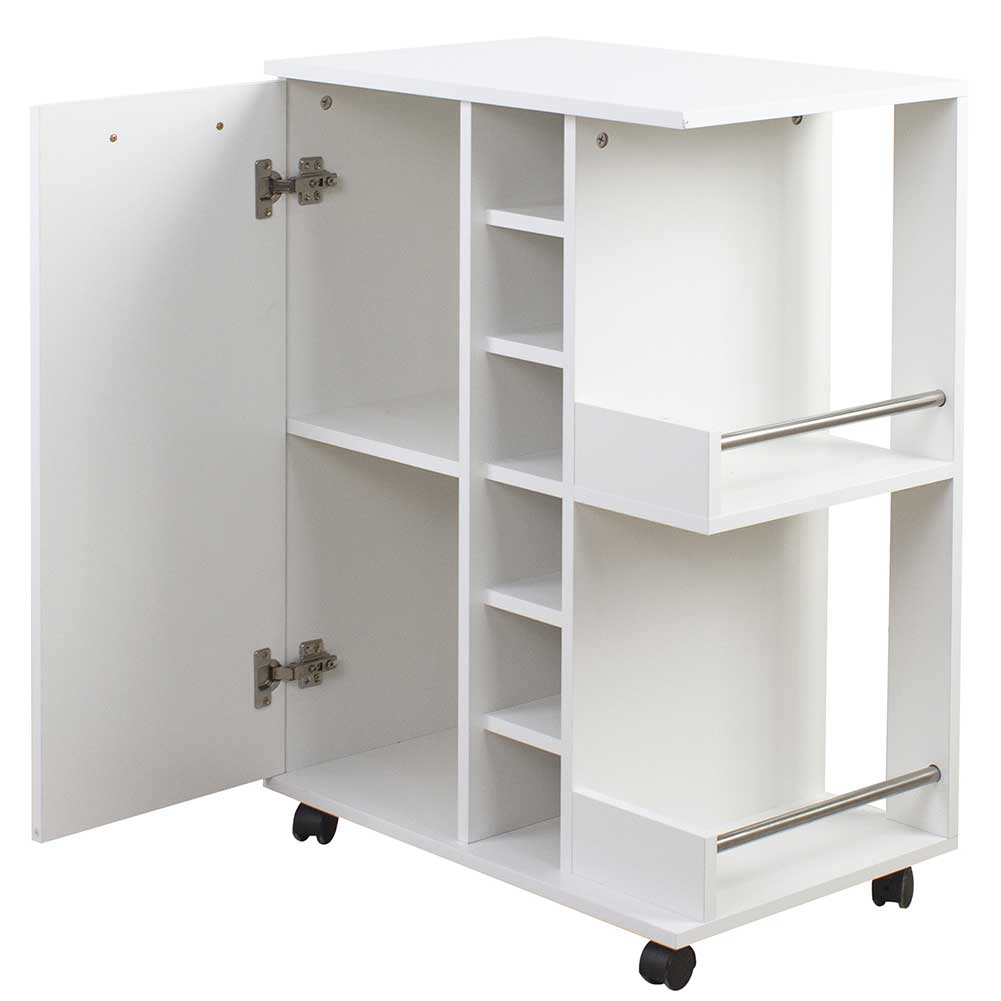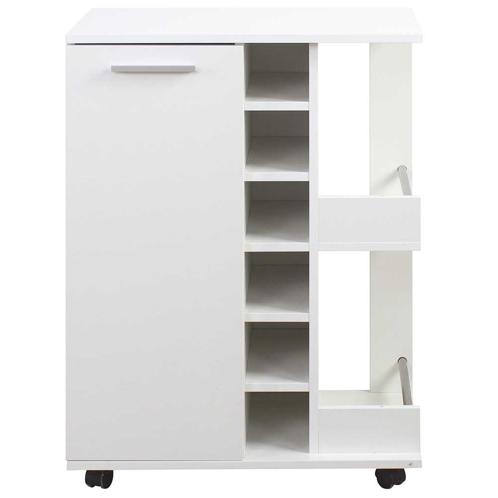 1 x Mobile Bar Cantinetta Bottiglie Vino Legno Cantina 6 Posti Porta Calici Bianco