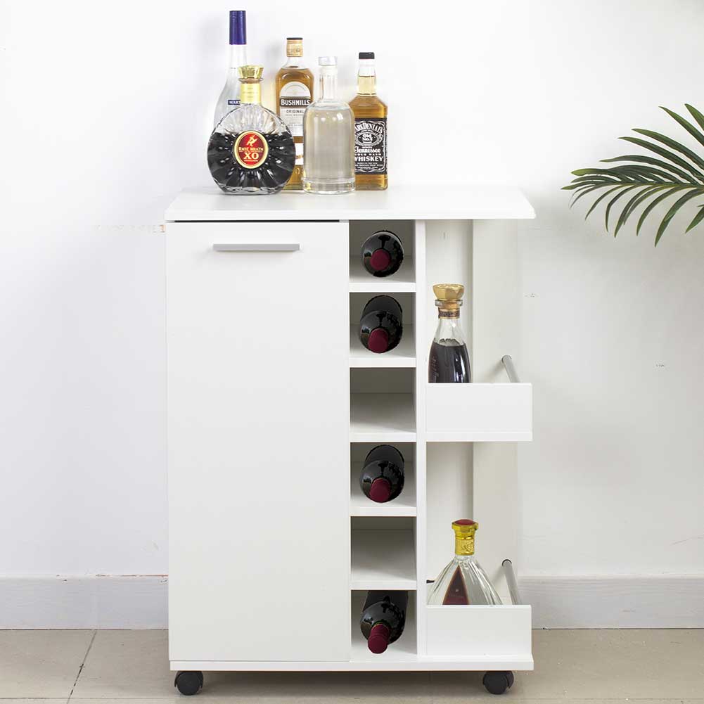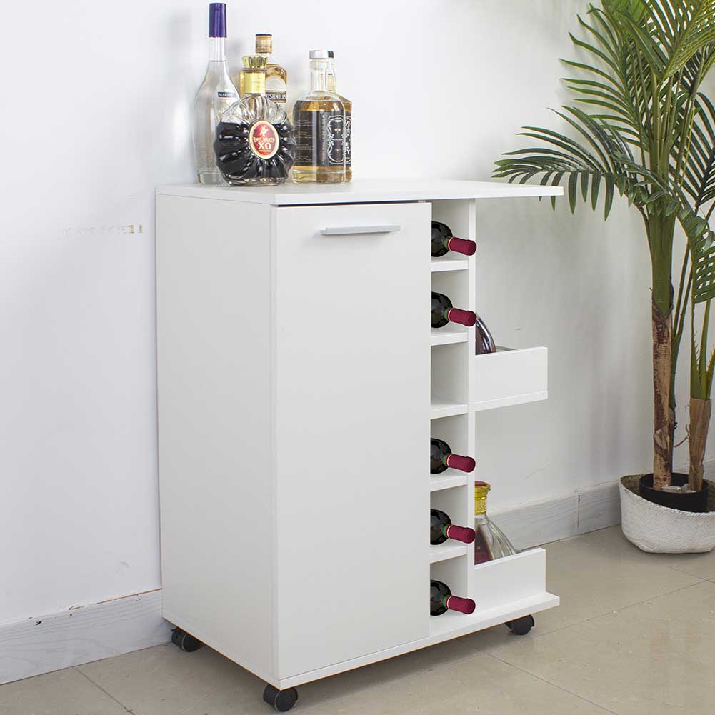 Questo nuovo e funzionale mobile cantinetta targato è realizzato interamente in legno MDF di altissima qualità in un elegantissimo colore Bianco ed è caratterizzato da un pratico ripiano superiore da poter utilizzare come superficie d'appoggio per bottiglie calici e stuzzichini durante le degustazioni con amici e parenti creando così un vero angolo da cocktail.