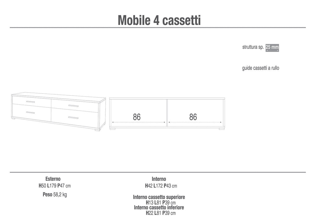 Mobile Basso 4 Cassetti 179x50x47 cm Ossido Bianco/Noce Stelvio