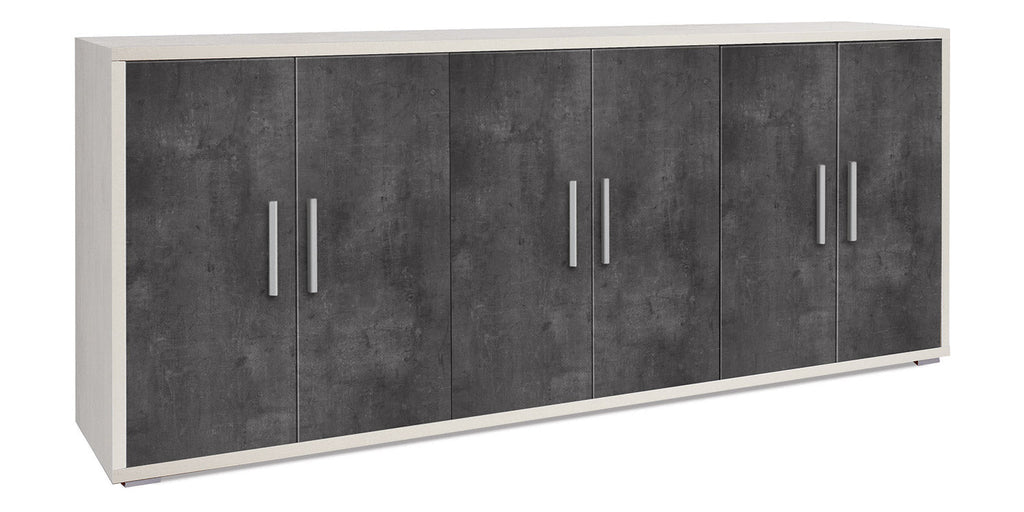 Mobile Basso 6 Ante 203x84x41 cm Ossido Bianco/Ossido Nero