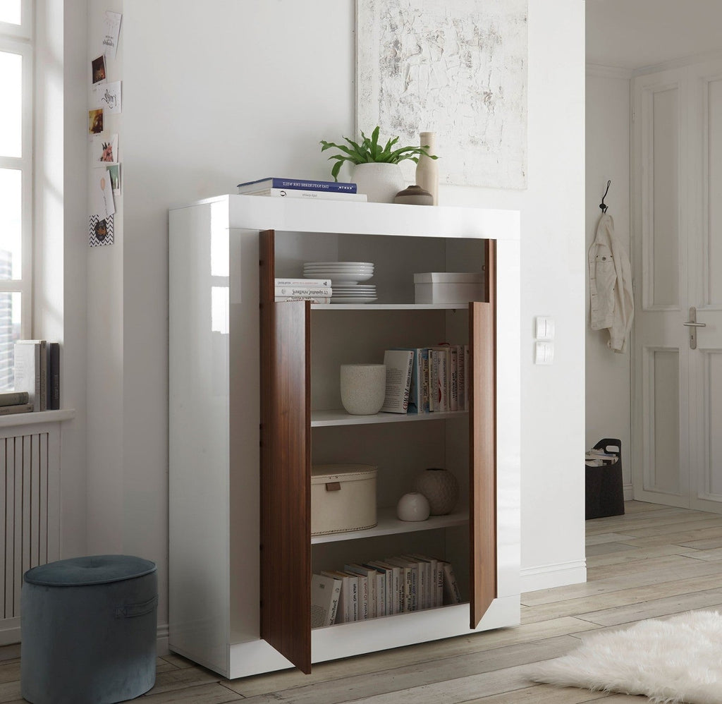 Mobile Buffet 2 Ante 110x42x144 cm in Legno TFT Lipari Bianco e Noce